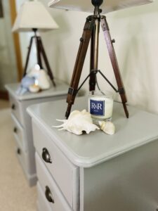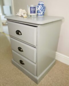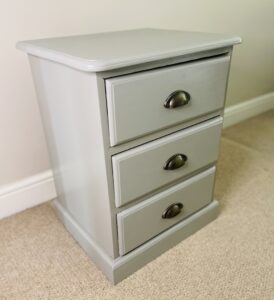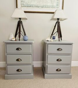 Painted in soft grey with half moon handles, this pair of side tables are perfect for by the side of the bed or as an occasional pieces in any room. Three spacious drawers complete this versatile piece.
